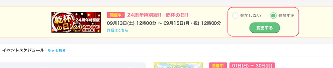 一度参加しても、「イベントに参加する」のチェックを外す事によりいつでも参加をとりやめる事が出来ます。